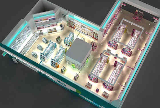 廣州展廳設(shè)計公司海王星辰終端形象藥店裝修設(shè)計